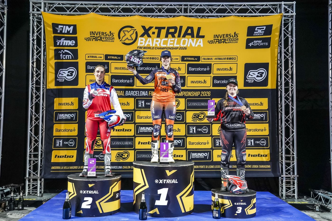 In the FIM Women’s X-Trial Trophy competition, Berta Abellán (Scorpa) claimed her third victory in Barcelona, finishing one point ahead of Andrea Sofia Rabino (Beta) and two points clear of Denisa Pechackova (TRRS). Alice Minta (Beta) and debutant Kaytlyn Adshead (Vértigo) completed the results.